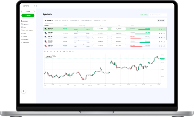 在 Zenstox,您可以交易从股票 CFD 到加密货币 CFD 的各种标的,无需持有任何基础资产。在 CFD 在线交易中,您只需预测正确的价格方向,即可利用市场波动获利。